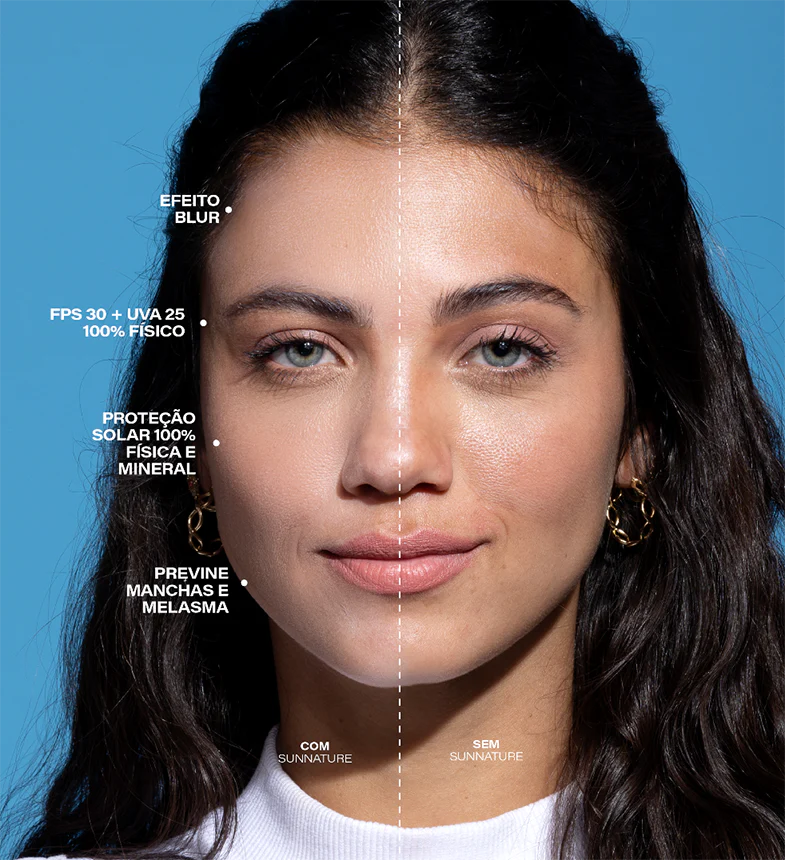 O Sunnature Facial da BioBio é um protetor solar com 99,01% de origem natural com FPS 30 e UVA 16 que protege dos raios solares e da luz azul enquanto trata a pele com potentes ativos naturais, evitando o envelhecimento precoce, flacidez e manchas. Além disso, é composto de filtros 100% físicos, e sua fórmula biodegradável livre de oxibenzona, petrolato, silicone ou filtros hidrossolúveis, limitando os impactos ambientais.